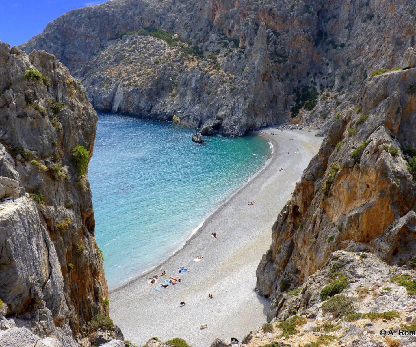You can cross the canyon and admire the rare beauty as well as the old church, Agio Antonio (St. Antonio), which was the area's religious centre during the time of the hermits. In the church's yard there is a well, which still has drinkable water. Around half an hour's walk further down, you can enjoy a swim and relax at the beach.