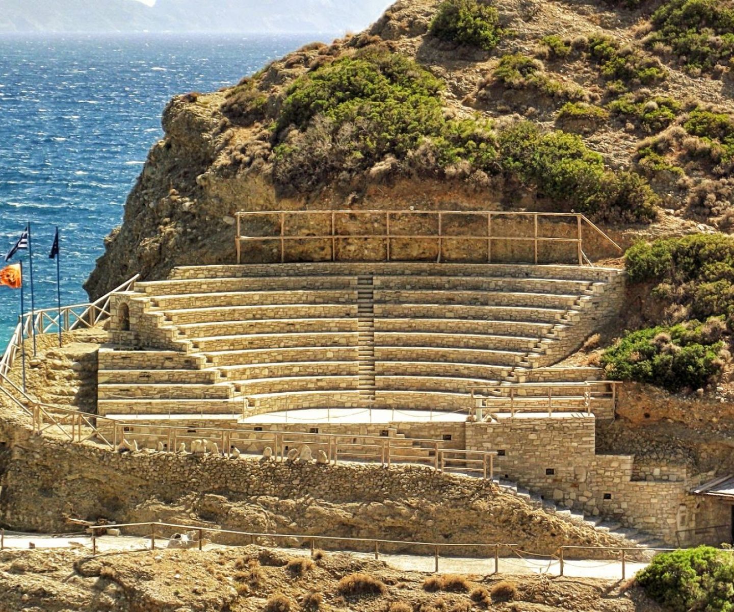 The rock that Daedalus and Icarus used as a base for their flight is located on the right side of the port facing the sea, still seeing them off on their doomed journey.