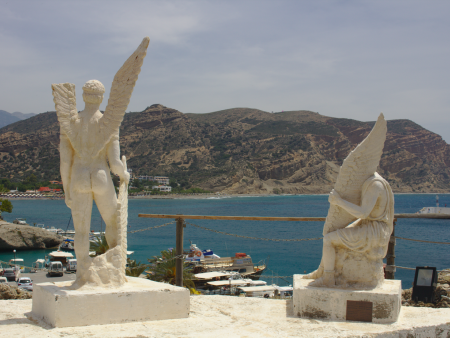 In Agia Galini is also the cave of Daedalus, where according to myth, Daedalus hid himself whilst being pursued by king Minos and together with his son Icarus, managed to fly to freedom using his self-built wings glued with wax