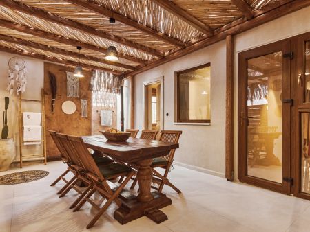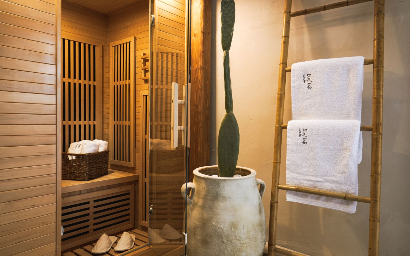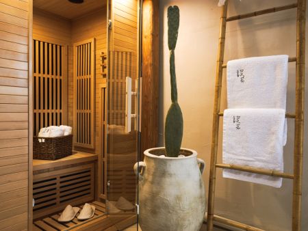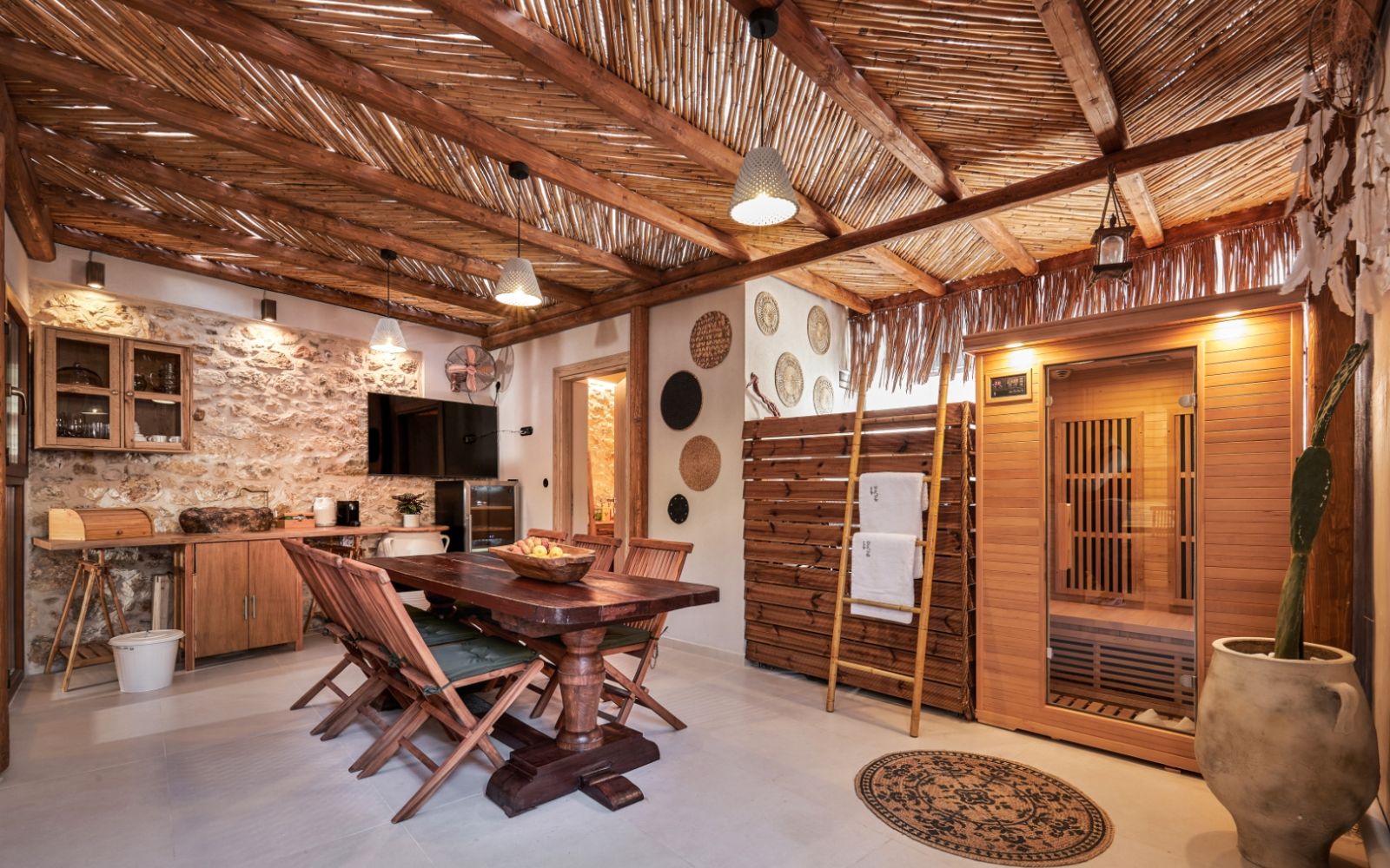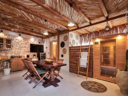 The residence features a private entrance, full air conditioning throughout, and a truly distinctive hospitality experience enhanced by a private jacuzzi and sauna, offering moments of wellness and complete relaxation.