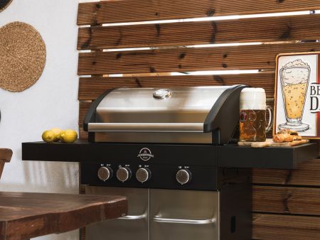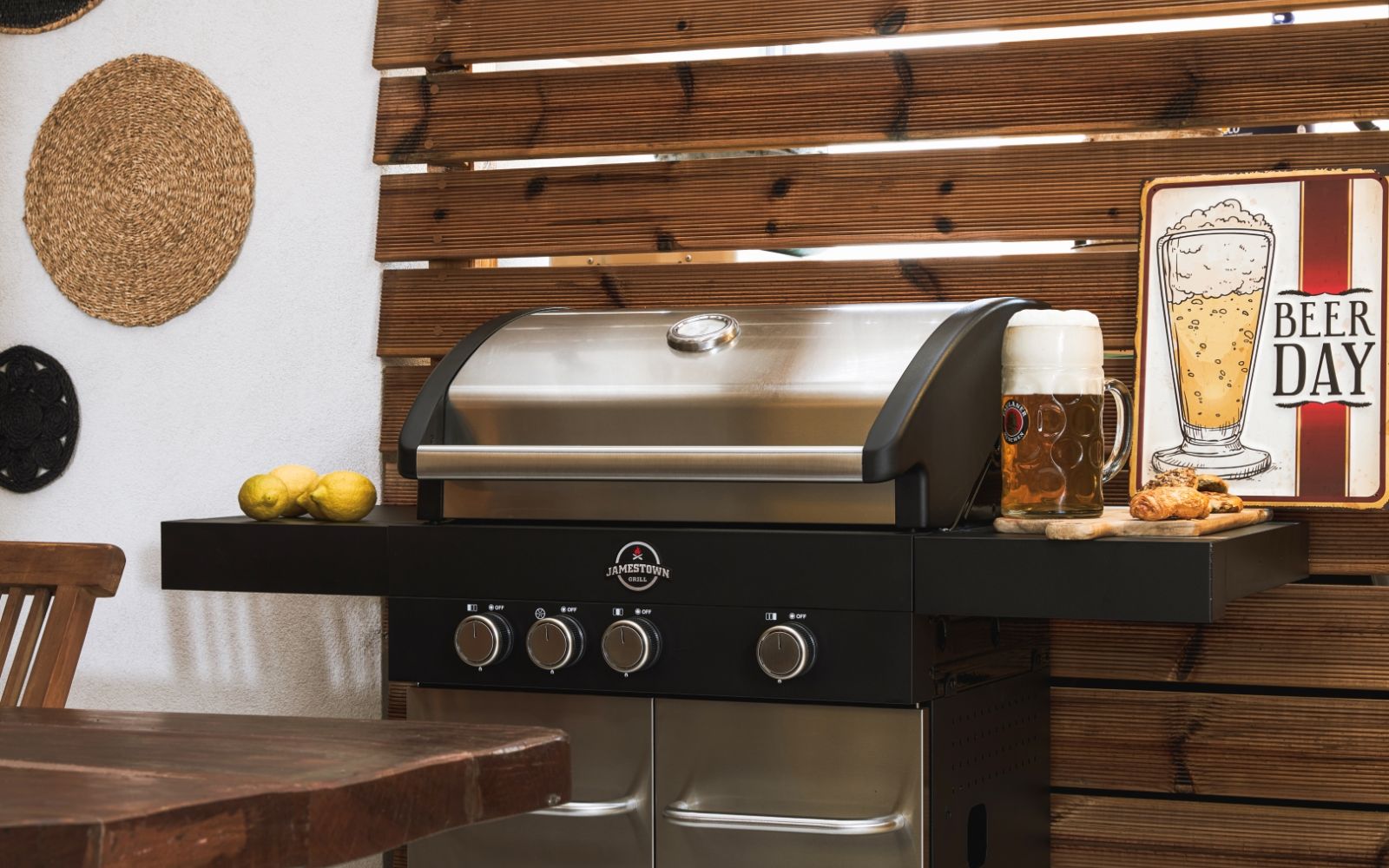Spacious courtyard with BBQ facilities, TV, and sauna