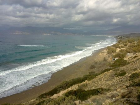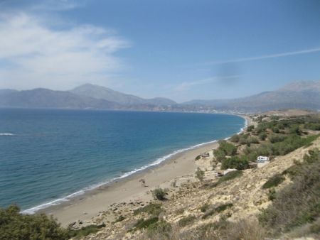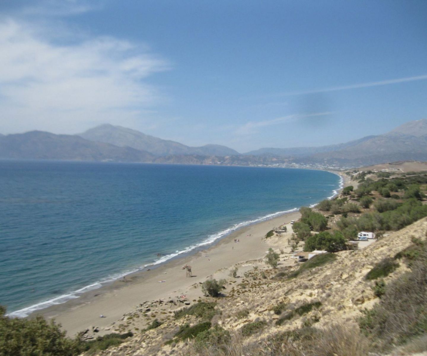 Komos is also widely considered to be the best nudist beach on Crete; Captain Barefoot thought it was wonderful and gives it a rating of 96%. The naturist section of this beach starts just north of the archaeological ruins and is more than half a kilometre long. There is some shade under trees at the back of the beach. There is plenty of room for everyone, even at weekends, and for your further enjoyment, “The Cakeman” can bring you delicious homemade cakes and coffee while you sit in the sand and watch the waves.