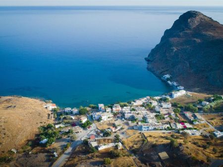 Lendas is a remote coastal village located 74km south of Heraklion, on the southern slopes of the imposing Asterousia Mountains. It is a tourist resort, mildly developed, offering very relaxing holidays. Lendas can be accessed from Agii Deka, close to Mires town, via the village of Miamou, through a narrow paved road. This road crosses the rugged mountains and descends from an altitude of about 1000m to Lendas (sea surface) in a route that offers breathtaking views over the sea of Lendas.